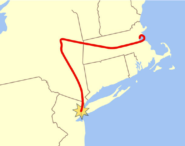 AA11, Boeing 767, WTC1 (Nordturm), Start in Boston, Destination Los Angeles