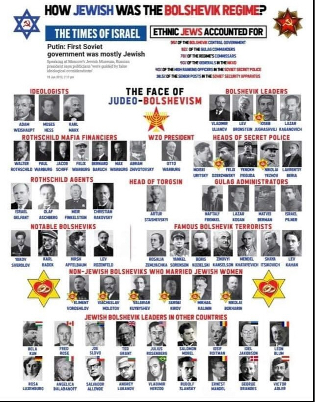 "Bolschewistische Juden haben die russische Revolution (1917) durchgeführt und es geschafft, 66 Millionen russische Christen zu töten = Unter Stalin und seinen kommunistischen Juden brannten Tausende von Kirchen nieder und bauten nach Bedarf Synagogen = Alexander SOLZHENITSYN sagt rundweg:" 66 Millionen "=" Wir dürfen nicht vergessen, dass einige der größten Mörder der Neuzeit Juden waren. " "Bolshevik Jews engineered the Russian Revolution (1917) and managed to kill 66 million Russian Christians = Under Stalin and his Communist Jews burned down thousands of the churches and built synagogues as needed = Alexander SOLZHENITSYN states flatly: “66 million” = “We mustn’t forget that some of greatest murderers of modern times were Jewish. "