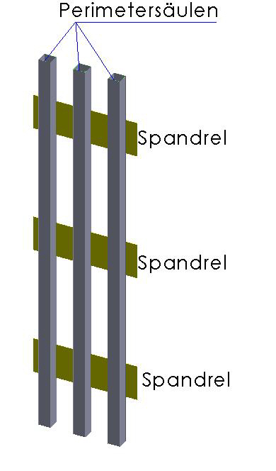 Ein Perimeterbaum besteht aus drei Perimetersäulen und drei Spandrel
