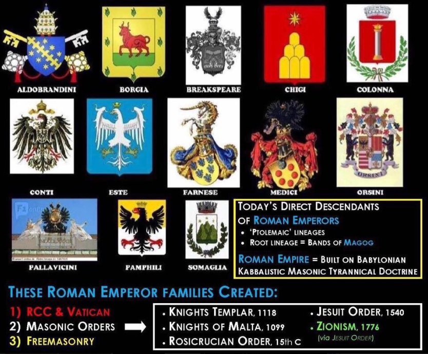 Die päpstlichen Blutlinien Geht es Ihnen genauso wie mir, dass Sie beim Betrachten des Bildes an den Bundesadler erinnert werden? Übrigens: Die Namen Borgia und Farnese organisierten die Gründung der Jesuiten zu Zeiten der Inquistion. Alles wurde gemordet, was sich nicht nur römisch-katholischen Kirche bekannte. Achtung: Der Begriff "römisch-katholisch" hat nichts mit dem ursprünglichen Christentum zu tun, auch wenn die meisten Leute das meinen. Frage: Hat eine Organisation wie der Vatikan, der Millionen von Menschen gemeuchelt hat noch das Recht als "christlich" bezeichnet zu werden? Hinter der Gründung der Jesuiten, welche die römisch-katholische Kirche dominiert, stehen die Jesuiten, welche eine verbrecherische Geschichte aufzuweisen haben. Das setzt sich bis zum heutigen Tag fort und heute hat sogar ein weißer Papst den Rang eines Jesuiten. Aber Achtung: Die Jesuiten sind über den Schwarzen Papst, der stets ein Jesuit ist, die eigentlichen Strippenzieher in der römischen Kirche. Also: Die päpstlichen Blutlinien haben über die Namen Borgia und Farnese die Gründung der Jesuiten eingeleitet und der Name des Jesuitengründers Ignatius von Loyola ist nur der vorgeschobene Frontmann gewesen. Die Kulissen im Hintergrund wurden und werden stets von den päpstlichen Blutlinien geschoben. Aber es geht noch weiter......