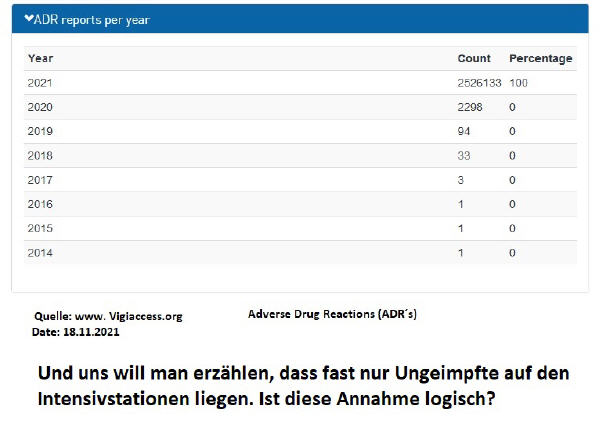 http://www.adrreports.eu/de/search_subst.html# Gemeldete Reaktionen auf die COVID Impfungen. Europäische Datenbank für gemeldete Verdachtsfälle von Arzneimittelnebenwirkungen.