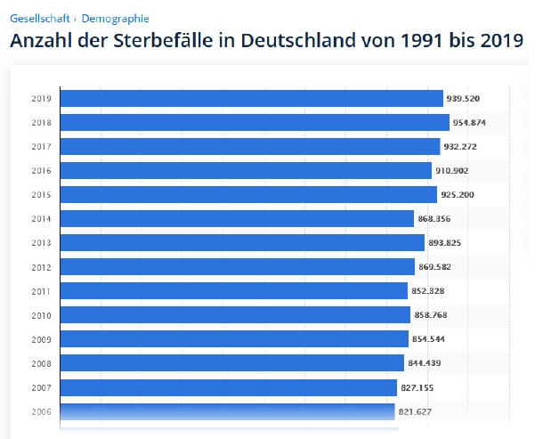 Es gibt keine Übersterblichkeit laut Statistischem Bundesamt. [im Dezember 2021 gibt es aber eine Übersterblichkeit laut Statista, und das trotz oder ?wegen? der Impfungen] Sie haben eine ganz andere Agenda, die unter dem Vorwand, Corona zu bekämpfen, knallhart umgesetzt wird. Wenn die Leute nicht aufwachen und die Politiker nicht aus ihren Ämtern entfernt werden, dann werden sie gewinnen und wir werden alle letztlich verlieren. Es gibt bereits jetzt zu viele Verlierer und es werden täglich mehr. Die Bundesregierung hat 2020 das Insolvenzgesetz ausgesetzt, was natülich auch Teil des Systems ist, aber inzwischen rollt eine eine Lawine von Insolvenzen auf die Nachfolgeregierung von Merkel zu. Und dann wird der geringe Rest der arbeitenden Bevölkerung nicht nur die Migranten durchzufüttern haben, sondern auch die enorme Anzahl von Arbeitslosen, deren Jobs durch eine verfehlte Politik an die Wand gefahren wurde. Zuerst holt man unkontrolliert zwei Millionen Migranten ins Land, die dem German Money (Germoney) nachjagen und jetzt gibt Merkel Deutschland durch Lockdowns den Rest. Was erwartet ihr von einer Kommunistin im Gewand einer CDU Politikerin? Sie hat sich wirklich gut getarnt, um sich am einst blühenden Deutschland zu rächen. Diese Matz. Matz ab....Angela Merkel