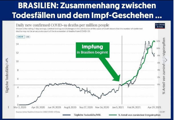 Tatsache: Bevor die verbrecherische Impfkampagne begann, lag die COVID INFECTION FATILITY RATE bei 0,15%. Dies ist die COVID Sterblichkeitsrate bezogen auf die Gesamtbevölkerung. Das Durchschnittsalter der an COVID Verstorbenen lag in Deutschland bei 83 bis 84 Jahren. Wie lange wollt ihr Impflinge noch schlafen und die Zukunft eurer Kinder durch Impfungen zerstören? Die Kinder waren zu keiner Zeit durch eine COVID Infektion in Gefahr. Die Impfungen stehen im Verdacht, das natürliche Immunsystem der Menschen zu zerstören. VAIDS = Vaccine Acquired Immune Deficiency Syndrome = Durch Impfungen ausgelöste Immunschwächekrankheit Was führt zur Koagulation (Verklumpung) der roten Blutkörperchen nach den Impfungen? Hierüber klären zwei Pathologiekonferenzen auf: https://www.pathologie-konferenz.de/ Auffällig sind bei "plötzlich und unerwartet Verstorbenen" mit Verdacht auf Impfschäden die lymphozytären Infiltrationen in allen Organen, einschließlich Herz.