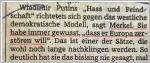 Ich bleibe dabei: Man hat Vladimir Putin in diesen Krieg gegen die Ukraine hineinproviziert. Wie oft hatte Putin gewarnt! Aber man wollte nicht auf ihn hören, weil der Westen diesen Krieg wollte. Man muß sich wie immer die Frage stellen: Cui bono?