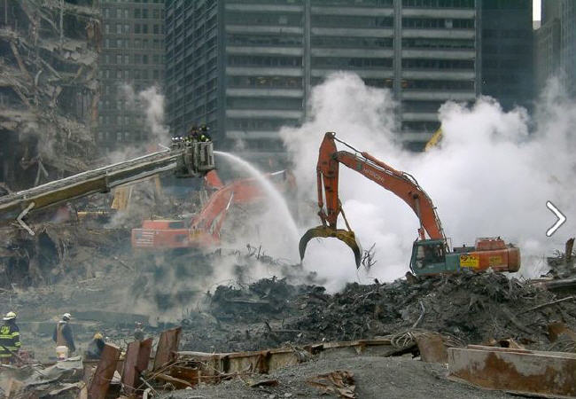 Ein gutes Beispiel für Fakten ist das untere Bild, welches sichtbares"fuming" an Ground Zero zeigt, das mehrere Monate lang anhielt. Was kann dies verursacht haben? Wenn Sie den Abschnitt