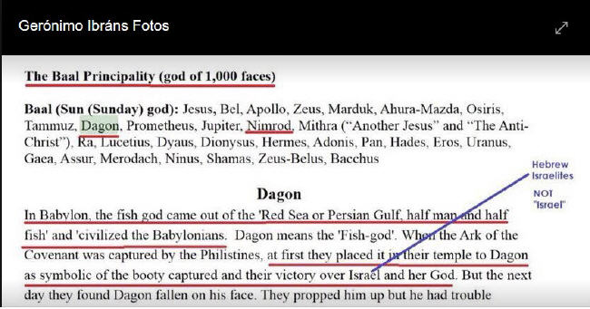 "However, it was revived in secret by his wife Semiramis. She claimed that Nimrod was now a god in the form of the sun, of which his earthly representation was fire. Semiramis later gave birth to a child, who was supposedly the reincarnation of the hero Nimrod, now the sun god. The child is known under various names, Molech, Osiris, Baal, and many more the most important one being “Tammuz”. The false claim was made that this was the promised seed of the woman."
